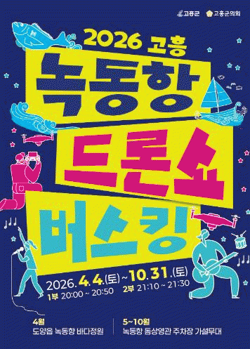 [¹Ìµð¾îÀü³² Á¦°¥´ëÁ¾ ±âÀÚ]°íÈﱺÀº 4¿ù 4ÀϺÎÅÍ 10¿ù 31ÀϱîÁö ¸ÅÁÖ Åä¿äÀÏ Àú³á 8½Ã, ³ìµ¿Ç× ¹Ù´ÙÁ¤¿ø ÀÏ¿ø¿¡¼ ¡®2026 °íÈï ³ìµ¿Ç× µå·Ð¼î ¹ö½ºÅ·¡¯ °ø¿¬À» °³ÃÖÇÑ´Ù°í ¹àÇû´Ù. ¿ÃÇØ·Î 4ȸ°¸¦ ¸ÂÀÌÇÑ ³ìµ¿Ç× µå·Ð¼î ¹ö½ºÅ· °ø¿¬Àº ¡¦