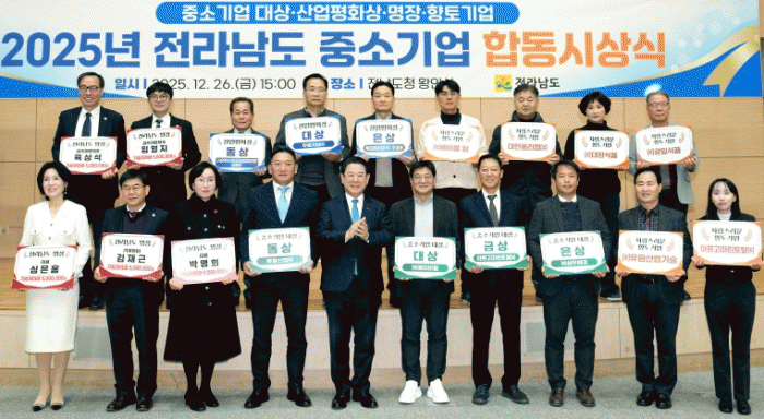 [¹Ìµð¾îÀü³² Á¦°¥´ëÁ¾ ±âÀÚ]Àü¶ó³²µµ´Â 26ÀÏ Áß¼Ò±â¾÷ÀÇ ¼ºÀå°ú »ê¾÷ÇöÀå ¼÷·Ã±â¼úÀÎÀÇ °ø·Î¸¦ ±â¸®±â À§ÇØ ¡®2025 Áß¼Ò±â¾÷ ÇÕµ¿ ½Ã»ó½Ä¡¯À» ¿°í ±â¾÷°æ¿µ¡¤³ë»çÈÇÕ¡¤¼÷·Ã±â¼ú µî °¢ ºÐ¾ß¿¡¼ ¿ì¼öÇÑ ¼º°ú¸¦ °ÅµÐ ±â¾÷°ú °³ÀÎÀ» ½Ã»óÇß¡¦