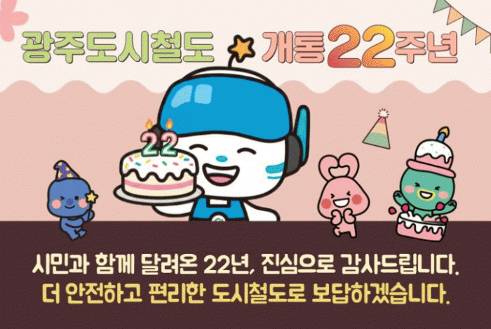 [¹Ìµð¾îÀü³² Á¦°¥´ëÁ¾ ±âÀÚ]±¤ÁÖ±³Åë°ø»ç´Â 1È£¼± °³Åë 22ÁÖ³âÀ» ¸Â¾Æ ½Ã¹Î ¼º¿ø¿¡ º¸´äÇϰíÀÚ °í°´°¨»ç Çà»ç¸¦ ¿À´Â 4¿ù 28ÀÏ »ó¹«¿ª¿¡¼ °³ÃÖÇÑ´Ù°í ¹àÇû´Ù. °ø»ç´Â 'µÑÀÌ(2-2) ½ºÅ丮: µ¿Çà°ú ÆíÀÍÀÇ Á¶È'¸¦ ½½·Î°ÇÀ¸·Î, ½Ã¹Î°ú µµ½Ã¡¦
