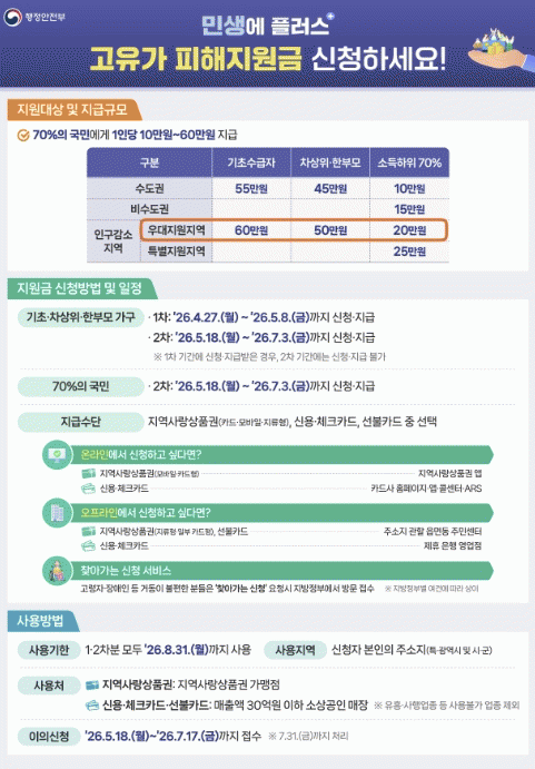[¹Ìµð¾îÀü³² Á¦°¥´ëÁ¾ ±âÀÚ]´ã¾ç±ºÀÌ Áö¼ÓµÇ´Â °íÀ¯°¡·Î ¾î·Á¿òÀ» °Þ´Â ±º¹Î°ú ¼Ò»ó°øÀÎÀÇ °æÁ¦Àû ºÎ´ãÀ» ´ú±â À§ÇØ ¿À´Â 27ÀϺÎÅÍ ¡®°íÀ¯°¡ ÇÇÇØÁö¿ø±Ý¡¯ ½ÅûÀ» ¹Þ´Â´Ù. Áö¿ø±ÝÀº ´ë»óº°·Î ½Ã±â¸¦ ³ª´² Á¢¼öÇÑ´Ù. 1Â÷´Â 4¿ù 27ÀϺÎÅÍ ¡¦