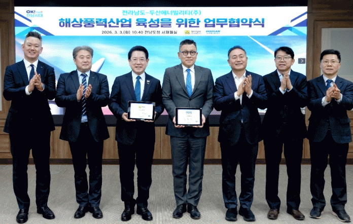 [¹Ìµð¾îÀü³² Á¦°¥´ëÁ¾ ±âÀÚ]Àü¶ó³²µµ´Â 3ÀÏ µµÃ» ¼ÀçÇʽǿ¡¼ ±¹³» ´ëÇ¥ ¿¡³ÊÁö±â¾÷ÀÎ µÎ»ê¿¡³Êºô¸®Æ¼¿Í ¡®ÇØ»ódz·Â »ê¾÷ À°¼ºÀ» À§ÇÑ ¾÷¹«Çù¾à¡¯À» Çß´Ù. Çù¾à½Ä¿¡´Â ±è¿µ·Ï Àü³²µµÁö»ç, ¼Û¿ëÁø µÎ»ê¿¡³Êºô¸®Æ¼ »çÀå, ±è¿øÀÌ ±¹È¸ÀÇ¿ø¡¦