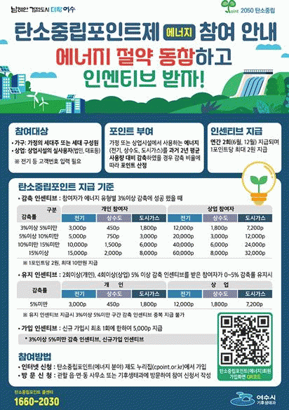 [¹Ìµð¾îÀü³² ÀüÇü¼º ±âÀÚ]¿©¼ö½Ã°¡ ¿ÃÇØµµ ¡®Åº¼ÒÁ߸³Æ÷ÀÎÆ®Á¦¡¯¸¦ ÃßÁøÇϱâ À§ÇØ ¿¡³ÊÁö ºÎ¹® 3¾ï ¿ø, ÀÚµ¿Â÷ ºÎ¹® 2õ 4¹é¸¸ ¿ø µî ÃÑ 3¾ï 2õ 4¹é¸¸ ¿øÀÇ ¿¹»êÀ» È®º¸ÇÏ¸ç ±âÈĺ¯È ¼±µµµµ½Ã·Î ÀÚ¸®¸Å±èÇϰí ÀÖ´Ù. ź¼ÒÁ߸³Æ÷ÀÎÆ®Á¦¡¦