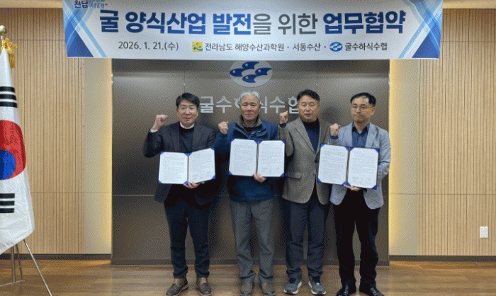 [¹Ìµð¾îÀü³² Á¦°¥´ëÁ¾ ±âÀÚ]Àü¶ó³²µµÇؾç¼ö»ê°úÇпø µ¿ºÎÁöºÎ ¿©¼öÁö¿øÀº 21ÀÏ ±¼¼öÇϽļöÇù, ±¼ ¾ç½Ä¾î¾÷Àΰú ±âÈĺ¯È ´ëÀÀ ±¼ »ý»ê¼º Çâ»ó°ú ¾ç½Ä±¸Á¶ °³¼± °øµ¿ ¿¬±¸¸¦ À§ÇÑ ¾÷¹«Çù¾àÀ» Çß´Ù. À̹ø ¾÷¹«Çù¾àÀº ÃÖ±Ù °í¼ö¿Â, ºó»ê¼Ò¼ö¡¦