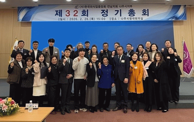 [¹Ìµð¾îÀü³² Á¦°¥´ëÁ¾ ±âÀÚ](»ç)Çѱ¹¿Ü½Ä¾÷Áß¾Óȸ ³ªÁÖ½ÃÁöºÎ(ÁöºÎÀå ¹Ý¼®Áø)´Â Áö³´Þ 26ÀÏ ³ªÁÖ½Ãû ´ëȸÀǽǿ¡¼ ¿Ü½Ä¾÷ °ü°èÀÚ¿Í ³»ºó µî 100¿© ¸íÀÌ Âü¼®ÇÑ °¡¿îµ¥ Á¦32ȸ Á¤±âÃÑȸ¸¦ °³ÃÖÇß´Ù. À̹ø ÃÑȸ´Â ¹°°¡ »ó½Â°ú ÀΰǺñ ºÎ¡¦