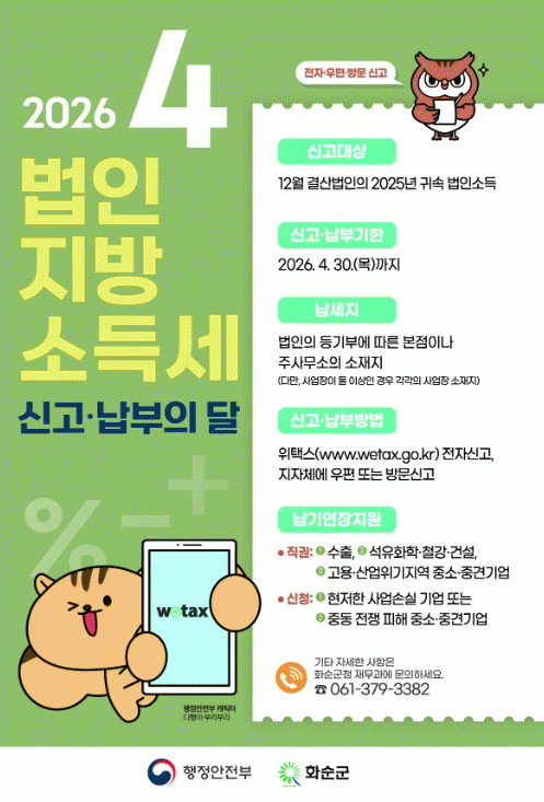 [¹Ìµð¾îÀü³² Á¦°¥´ëÁ¾ ±âÀÚ] ȼø±ºÀº 2025³â 12¿ù ¸» °á»ê¹ýÀÎÀ» ´ë»óÀ¸·Î ¿À´Â 4¿ù 30ÀϱîÁö ¹ýÀÎÁö¹æ¼Òµæ¼¼ ÁýÁß ½Å°í¡¤³³ºÎ ±â°£À» ¿î¿µÇÑ´Ù°í ¹àÇû´Ù. ¹ýÀÎÁö¹æ¼Òµæ¼¼´Â ¹ýÀμ¼ ³³¼¼Àǹ«°¡ ÀÖ´Â ¹ýÀÎÀÌ ¹ýÀμҵæÀ» °ú¼¼Ç¥ÁØÀ¸·Î Áö¡¦