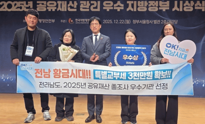 [¹Ìµð¾îÀü³² Á¦°¥´ëÁ¾ ±âÀÚ]Àü¶ó³²µµ´Â 22ÀÏ ÇàÁ¤¾ÈÀüºÎ ÁÖ°ü 2025³â °øÀ¯Àç»ê ¿ì¼öÁöÀÚü ½Ã»ó¿¡¼ °øÀ¯Àç»ê ÃÑÁ¶»ç ºÐ¾ß ¿ì¼ö ÁöÀÚü·Î ¼±Á¤µÅ ¿ì¼ö»ó°ú ÇÔ²² Ưº°±³ºÎ¼¼ 3õ¸¸ ¿øÀ» È®º¸Çß´Ù°í ¹àÇû´Ù. ¼øÃµ½Ã¡¤±¸·Ê±º¡¤À强±º¡¤¿Ïµµ±º¡¦
