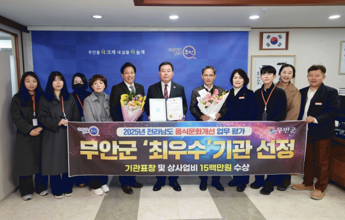 [¹Ìµð¾îÀü³² ±èÆÇ±¹ ±âÀÚ]¹«¾È±ºÀº Àü¶ó³²µµ ÁÖ°ü 2025³â À½½Ä¹®È°³¼± »ç¾÷ Æò°¡¿¡¼ ¡®ÃÖ¿ì¼ö¡¯ ±â°üÀ¸·Î ¼±Á¤µÇ¾î ±â°ü ǥâ°ú ÇÔ²² »ó»ç¾÷ºñ 1õ5¹é¸¸ ¿øÀ» È®º¸Çß´Ù. À̹ø ÃÖ¿ì¼ö±â°ü ¼±Á¤Àº Àü¶ó³²µµ 22°³ ½Ã±ºÀ» ´ë»óÀ¸·Î ¡ãÀ½½Ä¡¦