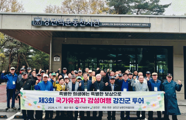 [¹Ìµð¾îÀü³² °í±Ô¼® ±âÀÚ] °Áø±º º¸ÈÆ´ÜüÇùÀÇȸ(ȸÀå ±è±ÔÇö)°¡ Áö³ 17ÀÏ 80¿© ¸íÀÇ ±¹°¡À¯°øÀÚ¸¦ ´ë»óÀ¸·Î Á¦3ȸ ±¹°¡À¯°øÀÚ °¨¼º¿©ÇàÀ» ÁøÇàÇß´Ù. À̹ø °¨¼º¿©ÇàÀº ¼ºÀü¸é ¹é¿îµ¿ Àü½Ã°ü°ú º´¿µ¸é Çϸá±â³ä°ü µî °Áø±º ¹®ÈÀ¯»ê ¡¦