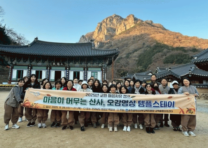 [¹Ìµð¾îÀü³² Á¦°¥´ëÁ¾ ±âÀÚ]±¤ÁÖ¼ºÎ±³À°Áö¿øÃ»Àº 26~27ÀÏ À强 ¹é¾ç»ç¿¡¼ °ü³» ±³¿ø 28¸íÀÌ Âü¿©ÇÑ °¡¿îµ¥ ¡®2025³â ±³¿ø ¸¶À½Ä¡À¯ Ä·ÇÁ¡¯¸¦ ¿î¿µÇß´Ù. À̹ø Ä·ÇÁ´Â ±³Á÷ ½ºÆ®·¹½º·Î ÁöÄ£ ±³¿øµéÀÌ ÀÏ»óÀ» ¹þ¾î³ª ¸¶À½ÀÇ Æò¿ÂÀ» ã°í¡¦