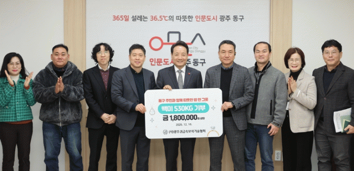 [¹Ìµð¾îÀü³² Á¦°¥´ëÁ¾ ±âÀÚ]±¤ÁÖ µ¿±¸´Â (»ç)±¤ÁֱͱݼӺ¸¼®±â¼úÇùȸ(ȸÀå ÀÌ¿µ°ü)·ÎºÎÅÍ ¹é¹Ì 530§¸(186¸¸ 1õ ¿ø »ó´ç)À» ÃÖ±Ù ±âºÎ¹Þ¾Ò´Ù°í ¹àÇû´Ù. À̹ø¿¡ Àü´ÞµÈ ¹é¹Ì´Â ¿¬¸»À» ¸Â¾Æ ÃæÀå·Î ÀÏ´ë ÁÖ¾ó¸® ¼Ò»ó°øÀεéÀÌ ¡®Áö¿ª Áֹε顦