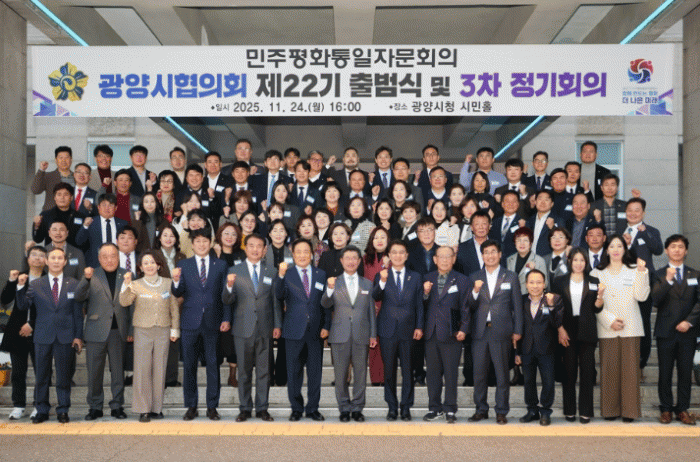 [¹Ìµð¾îÀü³² ÀÓ¼º¿Ï ±âÀÚ]¹ÎÁÖÆòÈÅëÀÏÀÚ¹®È¸ÀÇ ±¤¾ç½ÃÇùÀÇȸ(ȸÀå ¹Ú³ë½Å)´Â 24ÀÏ ½Ãû ½Ã¹ÎȦ¿¡¼ Á¦22±â ¹ÎÁÖÆòÅë Ãâ¹ü½Ä°ú 3ºÐ±â Á¤±âȸÀǸ¦ °³ÃÖÇß´Ù. Ãâ¹ü½ÄÀº ½ÅÀÓ È¸ÀåÀÇ ÃëÀÓ»ç·Î ¹®À» ¿¾úÀ¸¸ç, ¹ÎÁÖÆòÅë ÀÇÀåÀÎ ÀÌÀç¸í ´ëÅë·É¡¦