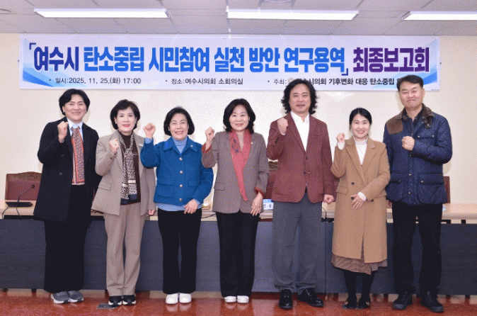 [¹Ìµð¾îÀü³² ÀüÇü¼º ±âÀÚ]¿©¼ö½ÃÀÇȸ ÀÇ¿ø¿¬±¸´Üü ¡®±âÈĺ¯È ´ëÀÀ ź¼ÒÁ߸³ ¿¬±¸È¸¡¯°¡ Áö³ 25ÀÏ ½ÃÀÇȸ ¼ÒȸÀǽǿ¡¼ '¿©¼ö½Ã ź¼ÒÁ߸³ ½Ã¹ÎÂü¿© ½Çõ¹æ¾È ¿¬±¸¿ë¿ª ÃÖÁ¾º¸°íȸ'¸¦ °³ÃÖÇß´Ù. À̹ø º¸°íȸ¿¡´Â Á¤½ÅÃâ ´ëÇ¥ÀÇ¿øÀ» ºñ¡¦
