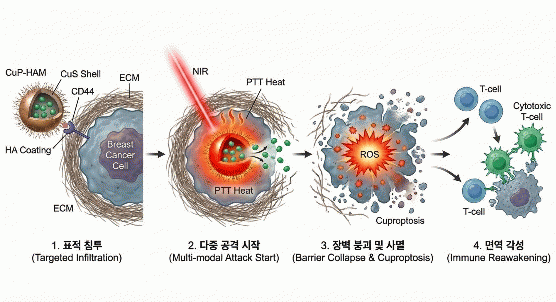 [¹Ìµð¾îÀü³² Á¦°¥´ëÁ¾ ±âÀÚ] Àü³²´ëÇб³ Àǰú´ëÇÐ ¹ÚÀÎ±Ô ±³¼ö ¿¬±¸ÆÀÀÌ ³Ä¡¼º ¾ÏÀ¸·Î ²ÅÈ÷´Â '»ïÁßÀ½¼º À¯¹æ¾Ï(TNBC)'À» ȹ±âÀûÀ¸·Î Ä¡·áÇÒ ¼ö ÀÖ´Â ´Ù±â´É¼º Çõ½Å ³ª³ë Àü´Þü(CuP-HAM)¸¦ °³¹ßÇÏ´Â µ¥ ¼º°øÇß´Ù. »ïÁßÀ½¼º À¯¹æ¾ÏÀº¡¦