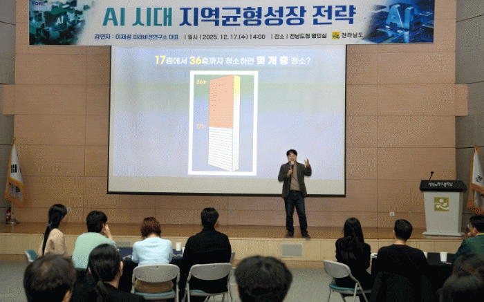 [¹Ìµð¾îÀü³² Á¦°¥´ëÁ¾ ±âÀÚ]Àü¶ó³²µµ´Â 17ÀÏ µµÃ» ¿ÕÀνǿ¡¼ ÀÌÀ缺 ¹Ì·¡ºñÀü¿¬±¸¼Ò ´ëÇ¥¸¦ ÃÊÃ»ÇØ ¡®AI ½Ã´ë Áö¿ª±ÕÇü¼ºÀå Àü·«¡¯À» ÁÖÁ¦·Î °¿¬À» °³ÃÖÇß´Ù. Á÷¿øµéÀÌ AI ±â¼úÀ» ÀÌÇØÇϰí Ȱ¿ëÇÒ ¼ö ÀÖ´Â ¿ª·®À» °®Ãß±â À§ÇØ ÀÓ¹®¿µ ¡¦