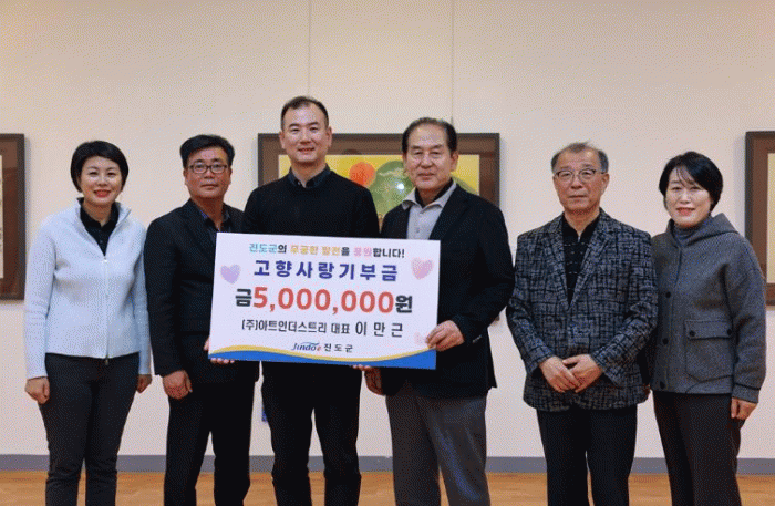 [¹Ìµð¾îÀü³² Á¦°¥´ëÁ¾ ±âÀÚ]À̸¸±Ù ¢ß¾ÆÆ®Àδõ½ºÆ®¸® ´ëÇ¥°¡ ÃÖ±Ù Áøµµ±º¿¡ °íÇâ»ç¶û±âºÎ±Ý 500¸¸ ¿øÀ» ±âºÎÇϸç, Áøµµ¿¡ ´ëÇÑ ±íÀº ¾ÖÁ¤À» ÀüÇß´Ù. ¼ÛÆÄ»ó°øÈ¸ ÇöÀå´ä»ç(ÆÔÅõ¾î)¸¦ ÅëÇØ Áøµµ¸¦ ¹æ¹®ÇÑ À̸¸±Ù ´ëÇ¥´Â ÁøµµÀÇ ¿ì¼öÇÑ ³ó¼ö¡¦