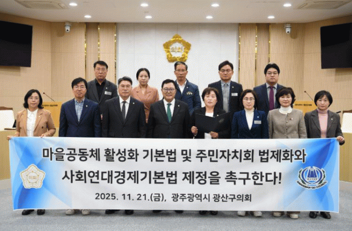 [¹Ìµð¾îÀü³² Á¦°¥´ëÁ¾ ±âÀÚ] ±¤»ê±¸ÀÇȸ°¡ 21ÀÏ Á¦301ȸ Á¤·Êȸ Á¦1Â÷ º»È¸ÀÇ¿¡¼ ¡®¸¶À»°øµ¿Ã¼ Ȱ¼ºÈ ±âº»¹ý, ÁÖ¹ÎÀÚġȸ ¹ýÁ¦È, »çȸ¿¬´ë°æÁ¦±âº»¹ý Á¦Á¤ Ã˱¸ °ÇÀǾȡ¯À» äÅÃÇß´Ù. ±¤»ê±¸ÀÇȸ´Â Á¶¿µÀÓ ÀÇ¿ø(´õºÒ¾î¹ÎÁÖ´ç, ÷´Ü1¡¦