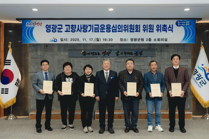 [¹Ìµð¾îÀü³² Á¦°¥´ëÁ¾ ±âÀÚ] ¿µ±¤±ºÀº 11¿ù 17ÀÏ ±ºÃ» ¼ÒȸÀǽǿ¡¼ ÀӱⰡ »õ·Î ½ÃÀ۵Ǵ ¿µ±¤±º °íÇâ»ç¶û±â±Ý¿î¿ë½ÉÀÇÀ§¿øÈ¸ À§¿ø 6¸í¿¡ ´ëÇØ À§ÃËÀåÀ» ¼ö¿©Çß´Ù. ¿µ±¤±º °íÇâ»ç¶û±â±Ý¿î¿ë½ÉÀÇÀ§¿øÈ¸´Â ±â±Ý °ü·Ã ºÐ¾ß Àü¹®Áö½Ä°ú °æ¡¦