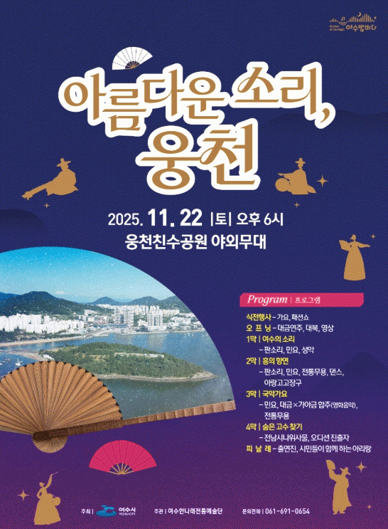 [¹Ìµð¾îÀü³² ÀüÇü¼º ±âÀÚ]¿©¼ö½Ã´Â ¿À´Â 11¿ù 22ÀÏ ¿õõģ¼ö°ø¿ø¿¡¼ ¾ß°£°ü±¤ Ưȵµ½Ã ÇÁ·Î±×·¥ ¡®¾Æ¸§´Ù¿î ¼Ò¸®, ¿õõ¡¯À» °³ÃÖÇÑ´Ù. ¡®¾Æ¸§´Ù¿î ¼Ò¸®, ¿õõ¡¯Àº ¿©¼öÀÇ ¼Ò¸®¸¦ ±â¹ÝÀ¸·Î ÆÇ¼Ò¸®, ¹Î¿ä, ÀüÅ빫¿ë, ¼º¾Ç, ÈüÇÕ ´í½º µî¡¦