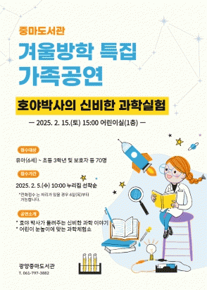 [¹Ìµð¾îÀü³² ÀÓ¼º¿Ï ±âÀÚ]±¤¾çÁ߸¶µµ¼°üÀÌ °Ü¿ï¹æÇÐÀ» ¸Â¾Æ Áö¿ª ¾î¸°À̵鿡°Ô °úÇаú ¸¶¼úÀ» °áÇÕÇÑ Æ¯º°ÇÑ °ø¿¬À» ¼±º¸ÀδÙ. ¡®È£¾ß¹Ú»çÀÇ ½ÅºñÇÑ °úÇнÇÇ衯Àº 2¿ù 15ÀÏ ¿ÀÈÄ 3½Ã¿¡ ±¤¾çÁ߸¶µµ¼°ü¿¡¼ ¿¸°´Ù. °¡Á· °ø¿¬ Àü¹®´Üü¡¦
