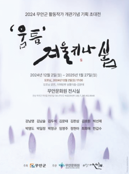 [¹Ìµð¾îÀü³² ±èÆÇ±¹ ±âÀÚ]¹«¾È¹®È¿øÀº ¹®ÈÁö¼Ò »ç¾÷ÀÇ ÀÏȯÀ¸·Î ÃßÁø ÁßÀÎ ¹«¾È±º¿¡¼ Ȱµ¿ÇÏ´Â ÀÛ°¡µéÀÌ ¸ð¿© '¡®¿òÆ´¡¯ °Ü¿ïÁö³ª º½'À» 25³â 1¿ù 27ÀÏ(¿ù)±îÁö ¹«¾È¹®È¿ø Àü½Ã½Ç¿¡¼ °³ÃֵȴÙ. À̹ø '¡®¿òÆ´¡¯ °Ü¿ïÁö³ª º½' Àü½Ã´Â¡¦