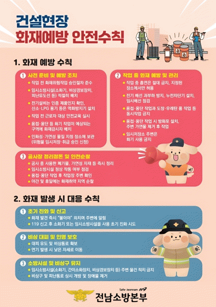 [¹Ìµð¾îÀü³² Á¦°¥´ëÁ¾ ±âÀÚ]ÇØ³²¼Ò¹æ¼(¼Àå ¹ÚÃáõ)°¡ °Ç¼³ÇöÀå ÈÀç»ç°í ¿¹¹æÀ» À§ÇØ ¾ÈÀü¼öÄ¢ È«º¸¸¦ °ÈÇÑ´Ù°í ¹àÇû´Ù. °Ç¼³ÇöÀåÀº ¿ëÁ¢¤ýÀý´Ü µî ȱâ Ãë±Þ ÀÛ¾÷°ú °¡¿¬¼º ÀÚÀç »ç¿ëÀÌ ¸¹¾Æ ÀÛÀº ºÎÁÖÀǵµ ´ëÇü ÈÀç·Î À̾îÁú °¡´É¡¦