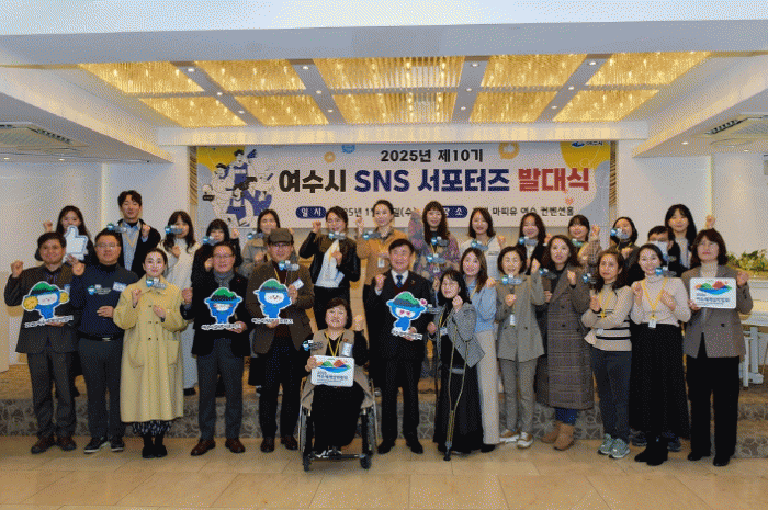 [¹Ìµð¾îÀü³² ÀüÇü¼º ±âÀÚ]¿©¼ö½Ã°¡ Á¦10±â SNS ¼Æ÷ÅÍÁî·Î 25¸íÀ» À§ÃËÇϰí 15ÀÏ ¿ÀÀü È£ÅÚ ¸¶¶ìÀ¯¿¡¼ ¹ß´ë½ÄÀ» °³ÃÖÇß´Ù. À̳¯ ¹ß´ë½ÄÀº Á¤±â¸í ½ÃÀå°ú SNS ¼Æ÷ÅÍÁî ¼±¹ßÀÚ, °ü°è °ø¹«¿ø µî 30¿© ¸íÀÌ Âü¼®ÇÑ °¡¿îµ¥ À§ÃËÀå ¼ö¿©, ¼¡¦