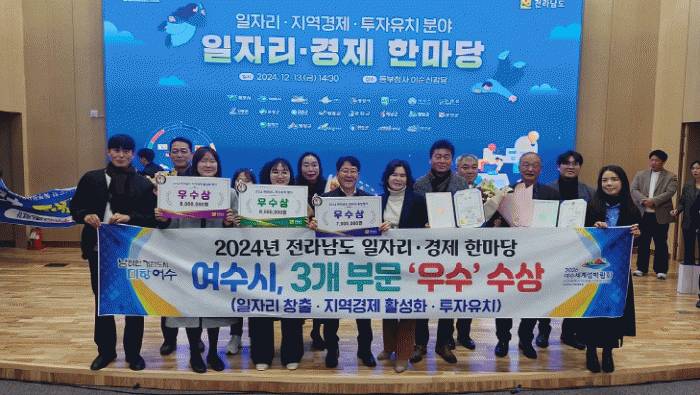 [¹Ìµð¾îÀü³² ÀüÇü¼º ±âÀÚ]¿©¼ö½Ã°¡ 13ÀÏ ¿ÀÈÄ Àü³²µµÃ» µ¿ºÎÁö¿ªº»ºÎ¿¡¼ ¿¸° ¡®2024 Àü³² ÀÏÀÚ¸®¡¤°æÁ¦ ÇѸ¶´ç¡¯¿¡¼ ¡®ÀÏÀÚ¸® âÃ⡯, ¡®Áö¿ª°æÁ¦ Ȱ¼ºÈ¡¯, ¡®ÅõÀÚÀ¯Ä¡¡¯ 3°³ ºÎ¹®¿¡¼ ¿ì¼ö»óÀ» ¼ö»óÇϸç 3°ü¿ÕÀ» ´Þ¼ºÇß´Ù. ¡®ÀÏÀÚ¸®¡¦