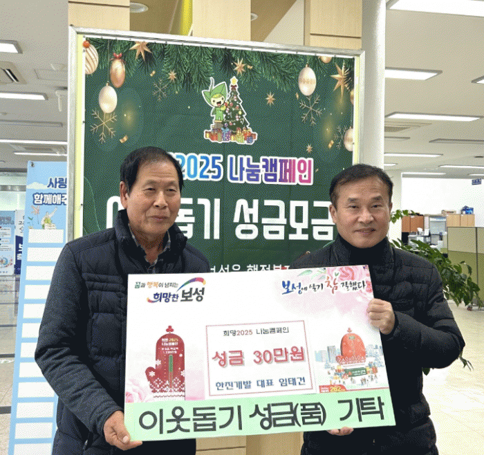 [¹Ìµð¾îÀü³² Á¦°¥´ëÁ¾ ±âÀÚ] º¸¼º±º º¸¼ºÀ¾Àº Áö³ 1ÀϺÎÅÍ ½ÃÀÛµÈ ¡®Èñ¸Á2025 ³ª´®Ä·ÆäÀΡ¯¿¡ °¢ ±â°ü¡¤´Üü, ÁֹεéÀÇ µû¶æÇÑ ³ª´®ÀÌ À̾îÁö°í ÀÖ´Ù°í ¹àÇû´Ù. À̹ø Ä·ÆäÀÎÀº 62Àϰ£ ÁøÇàµÇ´Â ÀÌ¿ôµ½±â ¼º±Ý ÁýÁß ¸ð±Ý Çà»ç·Î, ¸¶¡¦