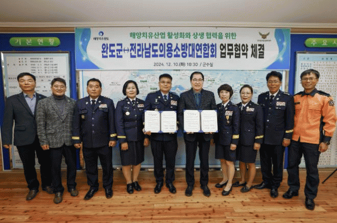 [¹Ìµð¾îÀü³² Á¦°¥´ëÁ¾ ±âÀÚ]¿Ïµµ±º°ú Àü¶ó³²µµÀÇ¿ë¼Ò¹æ´ë¿¬ÇÕȸ°¡ ÇØ¾çÄ¡À¯»ê¾÷ Ȱ¼ºÈ¿Í ±¹¹ÎÀÇ ¾ÈÀü°ú »ý¸í º¸È£¸¦ À§ÇØ ÃÖÀϼ±¿¡¼ ¾Ö¾²½Ã´Â ÀÇ¿ë¼Ò¹æ´ë¿øµéÀÇ º¹Áö ÁõÁøÀ» À§ÇØ ¾÷¹« Çù¾àÀ» ü°áÇß´Ù. Çù¾à½ÄÀº 10ÀÏ ¿Ïµµ±ºÃ»¿¡¼ Áø¡¦