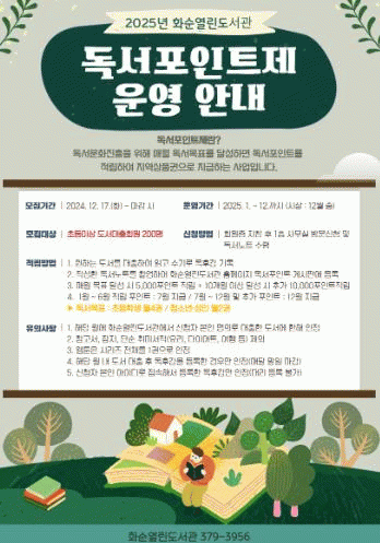 [¹Ìµð¾îÀü³² Á¦°¥´ëÁ¾ ±âÀÚ]ȼø±ºÀº ȼø ¿¸°µµ¼°ü¿¡¼ 12¿ù 17ÀϺÎÅÍ ¡°2025³â ȼø¿¸°µµ¼°ü µ¶¼Á¡¼öÁ¦(µ¶¼Æ÷ÀÎÆ®Á¦)¡± Âü°¡ÀÚ¸¦ ¸ðÁýÇÑ´Ù°í ¹àÇû´Ù. ȼø ¿¸°µµ¼°üÀº Áö¿ª Áֹε鿡°Ô µ¶¼¿¡ ´ëÇÑ µ¿±â¸¦ ºÎ¿©ÇÏ°í µ¶¼¹®È¸¦¡¦
