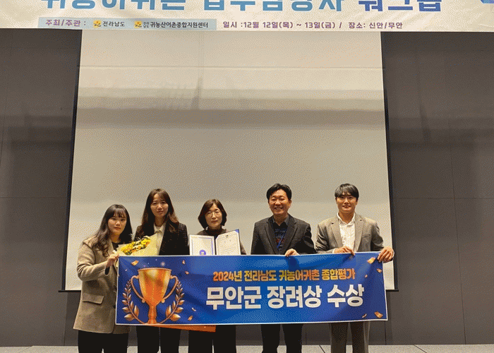 [¹Ìµð¾îÀü³² ±èÆÇ±¹ ±âÀÚ]Àü³² ¹«¾È±ºÀÌ ¡®2024³â Àü¶ó³²µµ ±Í³ó¾î±ÍÃÌ Á¾ÇÕÆò°¡¡¯¿¡¼ ¿ì¼öÁöÀÚü·Î ¼±Á¤µÇ¾î Àå·Á»óÀ» ¼ö»óÇß´Ù°í 12ÀÏ ¹àÇû´Ù. À̹ø Æò°¡´Â µµ³» 21°³ ½Ã±ºÀ» ´ë»óÀ¸·Î ±Í³ó¾î±ÍÃÌÀÎ À¯ÀÔ½ÇÀû, ±Í³ó¾î±ÍÃÌ Áö¿ø»ç¾÷ Ãß¡¦