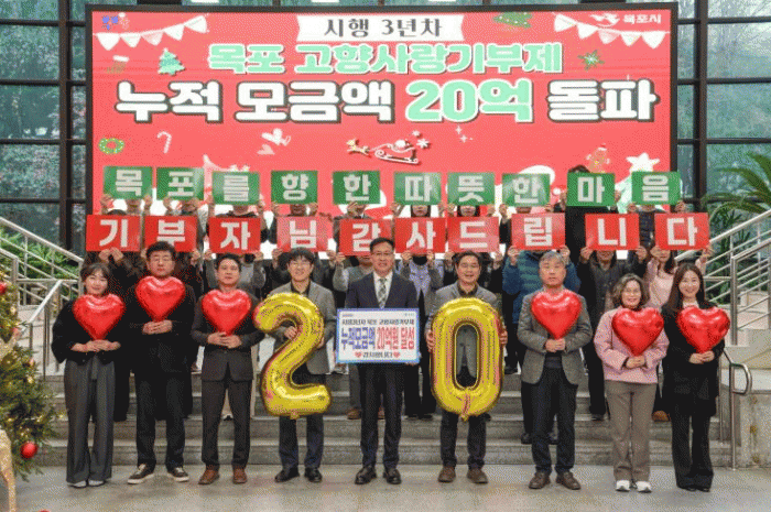 [¹Ìµð¾îÀü³² °í±Ô¼® ±âÀÚ]¸ñÆ÷½Ã´Â °íÇâ»ç¶û±âºÎÁ¦ ½ÃÇà 3³â ¸¸¿¡ ½Ã¹Î°ú Çâ¿ìµéÀÇ ²ÙÁØÇÑ ÀÀ¿ø°ú Âü¿©¿¡ ÈûÀÔ¾î 12¿ù 16ÀÏ ±âÁØ ´©Àû ¸ð±Ý¾× 20¾ï ¿øÀ» ´Þ¼ºÇß´Ù°í ¹àÇû´Ù. ½Ã¿¡ µû¸£¸é °íÇâ»ç¶û±âºÎÁ¦ ½ÃÇà Ã¹ÇØÀÎ 2023³â¿¡´Â 5¾ï 6,7¡¦
