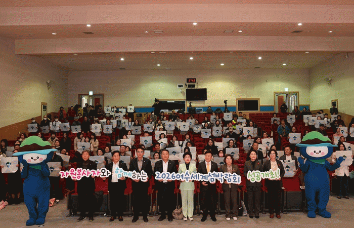 [¹Ìµð¾îÀü³² ÀüÇü¼º ±âÀÚ]¿©¼ö½Ã°¡ ÀÚ¿øºÀ»çÁÖ°£ Çà»ç¸¦ ¿¾î °ü³» ÀÚ¿øºÀ»çÀÚµéÀ» °Ý·ÁÇϰí, 2026¿©¼ö¼¼°è¼¶¹Ú¶÷ȸ ¼º°ø°³ÃÖ¸¦ À§ÇÑ ÀÚ¿øºÀ»ç µ¿ÂüÀ» µ¶·ÁÇß´Ù. 2ÀÏ ½Ã¿¡ µû¸£¸é ¡®ÀÚ¿øºÀ»ç¿Í ÇÔ²²ÇÏ´Â 2026¿©¼ö¼¼°è¼¶¹Ú¶÷ȸ ¼º°ø°³ÃÖ¡¯¡¦