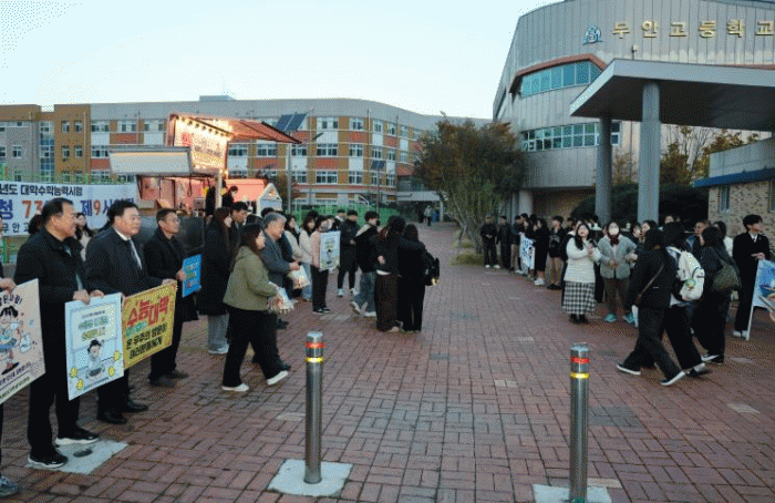 [¹Ìµð¾îÀü³² ±èÆÇ±¹ ±âÀÚ]Àü³² ¹«¾È±ºÀº 13ÀÏ 2026Çг⵵ ´ëÇмöÇдɷ½ÃÇèÀ» ¸Â¾Æ ¹«¾È°íµîÇб³ µî °ü³» ¼ö´É °í»çÀå ¾Õ¿¡¼ ¡®±æ°Å¸® ¼ö´ÉÀÀ¿ø¡¯À» ÁøÇàÇß´Ù. À̹ø ¼ö´É ÀÀ¿øÀº ¼öÇè»ýµéÀÇ ±äÀåÀ» ´ú¾îÁÖ°í ¿ë±â¿Í ÀڽۨÀ» ºÏµ¸¾Æ ÁÖ¡¦