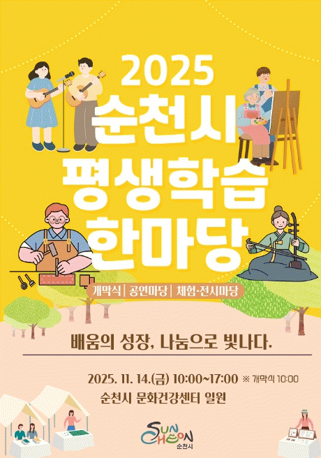 [¹Ìµð¾îÀü³² ÀÓ¼º¿Ï ±âÀÚ]¼øÃµ½Ã´Â ¿À´Â 14ÀÏ ¼øÃµ½Ã¹®È°Ç°¼¾ÅÍ ÀÏ¿ø¿¡¼ ¡®¹è¿òÀÇ ¼ºÀå, ³ª´®À¸·Î ºû³ª´Ù¡¯¸¦ ÁÖÁ¦·Î ¡®2025 ¼øÃµ½Ã Æò»ýÇнÀ ÇѸ¶´ç¡¯À» °³ÃÖÇÑ´Ù. À̹ø Çà»ç´Â ´Ù¾çÇÑ °èÃþ°ú ¼¼´ë°¡ ¾î¿ì·¯Á® ÇнÀÀÇ °¡Ä¡¸¦ °øÀ¯ÇÏ¡¦