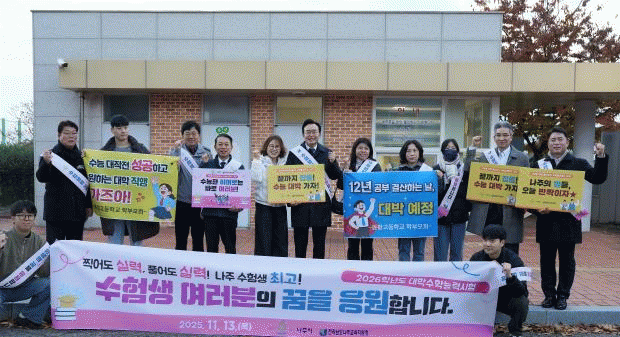 [¹Ìµð¾îÀü³² Á¦°¥´ëÁ¾ ±âÀÚ]Àü¶ó³²µµ ³ªÁֽð¡ 2026Çг⵵ ´ëÇмöÇдɷ½ÃÇèÀ» ¸Â¾Æ ÀÀ¿ø Çà»ç¸¦ ÁøÇàÇß´Ù. 13ÀÏ ³ªÁֽÿ¡ µû¸£¸é ¼öÇè»ýµéÀÇ ³ë·ÂÀ» °Ý·ÁÇÏ°í ¾ÈÀüÇÑ ½ÃÇè ȯ°æ Á¶¼ºÀ» À§ÇØ À̳¯ ¿ÀÀü ³ªÁÖ°íµîÇб³¿Í ºÀȲ°íµîÇб³ Á¤¹®¡¦