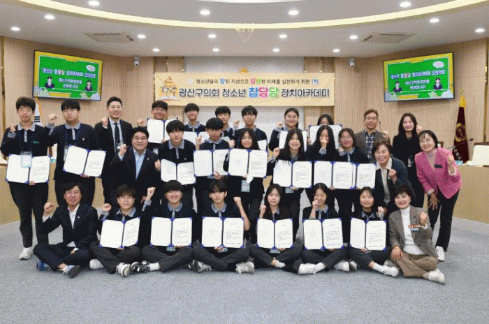 [¹Ìµð¾îÀü³² Á¦°¥´ëÁ¾ ±âÀÚ] ±¤»ê±¸ÀÇȸ°¡ 11ÀÏ Ã»¼Ò³â Á¤Ä¡Âü¿© ¿ª·® °È ±³À° ÇÁ·Î±×·¥ÀÎ ¡®Á¦2±â û¼Ò³â Âü´ç´ç Á¤Ä¡ ¾ÆÄ«µ¥¹Ì¡¯ÀÇ ¼º°øÀûÀÎ ¸¶¹«¸®¸¦ ¾Ë·È´Ù. Á¦2±â ¾ÆÄ«µ¥¹Ì´Â ÁøÈïÁßÇб³ ÇлýµéÀ» ´ë»óÀ¸·Î Áö³ 3¿ù 28ÀÏ °³°ÇØ¡¦