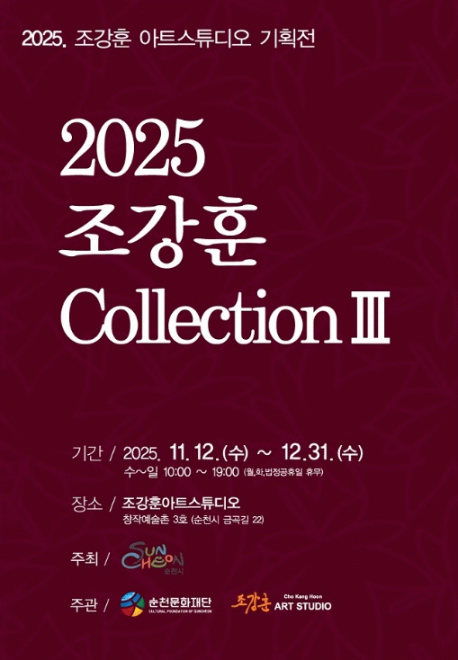 [¹Ìµð¾îÀü³² ÀÓ¼º¿Ï ±âÀÚ]¼øÃµ¹®ÈÀç´ÜÀº ¿À´Â 11¿ù 12ÀϺÎÅÍ 12¿ù 31ÀϱîÁö âÀÛ¿¹¼úÃÌ 3È£ Á¶°ÈÆ ¾ÆÆ® ½ºÆ©µð¿À¿¡¼ ¡®2025 Á¶°ÈÆ Ä÷º¼Ç¥²¡¯ Àü½Ã¸¦ °³ÃÖÇÑ´Ù. Á¶°ÈÆ È¹éÀº Á¦29´ë Çѱ¹¿¹¼ú¹®È´ÜüÃÑ¿¬ÇÕȸ(Çѱ¹¿¹ÃÑ) ȸÀåÀ¸·Î,¡¦