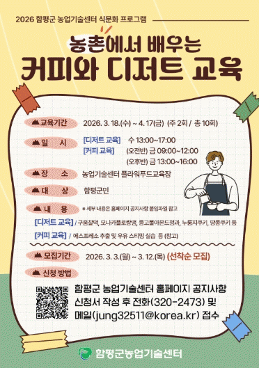 [¹Ìµð¾îÀü³² Á¦°¥´ëÁ¾ ±âÀÚ]Àü³² ÇÔÆò±ºÀÌ ±º¹ÎÀ» ´ë»óÀ¸·Î â¾÷¡¤¼Ò±Ô¸ð Ä«Æä ¿î¿µ¿¡ ÇÊ¿äÇÑ ½Ç¹« ¿ª·® ±³À°À» Á¦°øÇÑ´Ù. ÇÔÆò±º ³ó¾÷±â¼ú¼¾ÅÍ´Â ¡°³»´Þ 3ÀϺÎÅÍ 12ÀϱîÁö ¡®³óÃÌ¿¡¼ ¹è¿ì´Â Ä¿ÇÇ¿Í µðÀúÆ® ±³À°¡¯ ¼ö°»ýÀ» ¸ðÁýÇÑ´Ù¡±¡¦