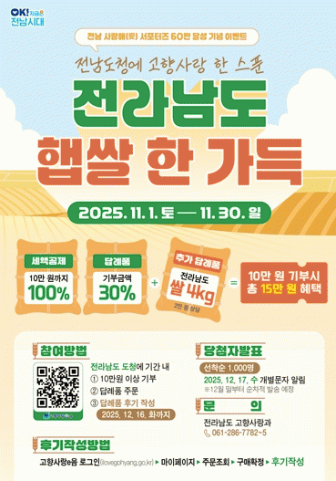 [¹Ìµð¾îÀü³² Á¦°¥´ëÁ¾ ±âÀÚ]Àü¶ó³²µµ´Â Áö¿ª »ó»ý ¹ßÀüÀ» À§ÇØ µµÀÔÇÑ ¡®Àü³² »ç¶û¾Ö(äñ) ¼Æ÷ÅÍÁ 60¸¸ ¸í µ¹ÆÄ¸¦ ±â³äÇØ 11¿ù ÇÑ ´Þ°£ Àü³²»ê ÇݽÒÀ» ÁõÁ¤ÇÏ´Â °íÇâ»ç¶û±âºÎÁ¦ °¨»ç À̺¥Æ®¸¦ ÃßÁøÇÑ´Ù°í ¹àÇû´Ù. À̺¥Æ®´Â °íÇâ¿¡ »ç¡¦
