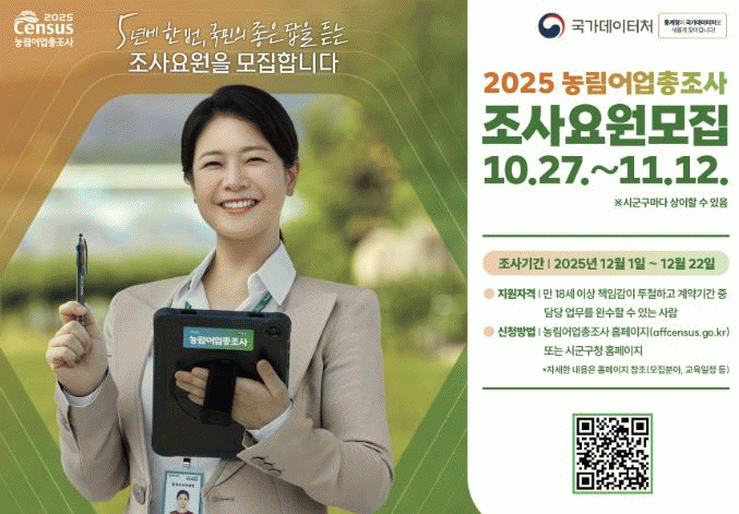 [¹Ìµð¾îÀü³² Á¦°¥´ëÁ¾ ±âÀÚ]ÇØ³²±ºÀº ¿À´Â 20ÀÏ Àü±¹ÀûÀ¸·Î ½Ç½ÃµÇ´Â 2025 ³ó¸²¾î¾÷ÃÑÁ¶»ç¿¡ Âü¿©ÇÒ Á¶»ç¿ä¿ø 127¸íÀ» °ø°³ ¸ðÁýÇÑ´Ù. ³ó¸²¾î¾÷ÃÑÁ¶»ç´Â 5³â¸¶´Ù ½Ç½ÃµÇ´Â ±¹°¡ Åë°è»ç¾÷À¸·Î, ³ó°¡¡¤ÀÓ°¡¡¤¾î°¡ÀÇ ±Ô¸ð¿Í °æ¿µÇüÅÂ, ±¸Á¶¡¦