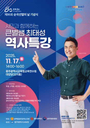 [¹Ìµð¾îÀü³² Á¦°¥´ëÁ¾ ±âÀÚ]±¤Áֽñ³À°Ã»Àº ±¤º¹ 80ÁÖ³â°ú Á¦86ȸ ¼ø±¹¼±¿ÀÇ ³¯À» ¸Â¾Æ ¿À´Â 17ÀÏ ±¤Áֽñ³À°Ã»±³À°¿¬¼ö¿ø ´ë°´ç¿¡¼ ¡®½Ã¹Î°ú ÇÔ²²ÇÏ´Â ¡¯Å«º°½Ü¡® ÃÖżº ¿ª»ç Ư°¡¯À» °³ÃÖÇÑ´Ù. À̹ø Ư°Àº ³ª¶óÀÇ µ¶¸³°ú ÀÚÀ¯¸¦¡¦