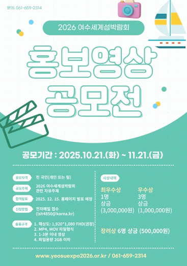 [¹Ìµð¾îÀü³² ÀüÇü¼º ±âÀÚ](Àç)2026¿©¼ö¼¼°è¼¶¹Ú¶÷ȸÁ¶Á÷À§¿øÈ¸°¡ 11¿ù 21ÀϱîÁö ¡®2026¿©¼ö¼¼°è¼¶¹Ú¶÷ȸ È«º¸¿µ»ó °ø¸ðÀü¡¯À» °³ÃÖÇÑ´Ù. À̹ø °ø¸ðÀüÀº ¼¶¹Ú¶÷ȸ¿¡ ´ëÇÑ Àü ±¹¹ÎÀÇ °ü½Éµµ¸¦ ³ôÀ̱â À§ÇØ ¸¶·ÃµÆ´Ù. °ø¸ð ºÐ¾ß´Â ¡®¼¶¹Ú¶÷¡¦
