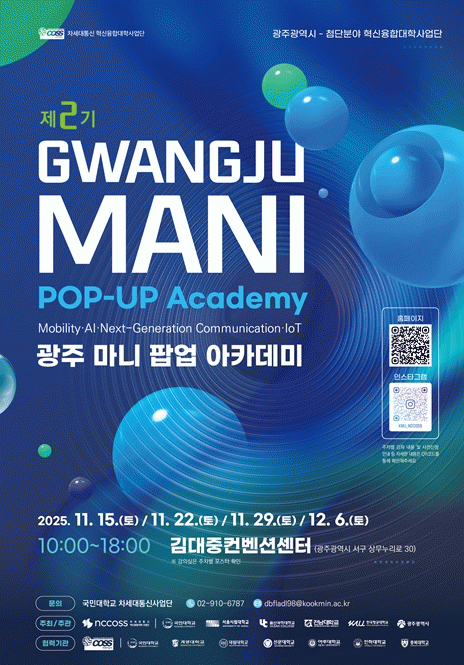 [¹Ìµð¾îÀü³² Á¦°¥´ëÁ¾ ±âÀÚ]±¤ÁÖ½Ã¿Í Â÷¼¼´ëÅë½ÅÇõ½ÅÀ¶ÇÕ´ëÇлç¾÷´Ü ÄÁ¼Ò½Ã¾öÀÌ °øµ¿À¸·Î °³ÃÖÇÏ´Â ÆË¾÷ ¾ÆÄ«µ¥¹Ì ¡®±¤ÁÖ ¸¶´Ï(MANI)¡¯°¡ ¿À´Â 11¿ù 15ÀϺÎÅÍ 12¿ù 6ÀϱîÁö ¸ÅÁÖ Åä¿äÀÏ ±è´ëÁßÄÁº¥¼Ç¼¾ÅÍ¿¡¼ ÁøÇàµÈ´Ù. ¿ÃÇØ 2ȸ°¿¸®¡¦