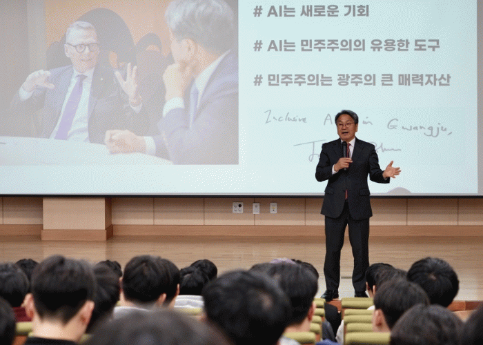 [¹Ìµð¾îÀü³² Á¦°¥´ëÁ¾ ±âÀÚ]°±âÁ¤ ±¤ÁÖ±¤¿ª½ÃÀå°ú ±¤ÁÖ Ã»³âµéÀÌ ¡®ÀΰøÁö´É(AI)À¸·Î ¿©´Â ±¤ÁÖÀÇ ¹Ì·¡, û³âÀÇ ¿ªÇÒ¡¯À» ÁÖÁ¦·Î ¹¶ÃÆ´Ù. ° ½ÃÀåÀº 3ÀÏ ¿ÀÈÄ Çѱ¹Æú¸®ÅØ´ëÇÐ ±¤ÁÖÄ·ÆÛ½º¸¦ ¹æ¹®ÇØ Ã»³âµé°ú ¼ÒÅëÇß´Ù. À̹ø Çà»ç´Â »ê¡¦