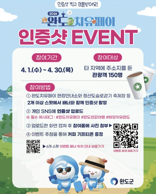 [¹Ìµð¾îÀü³² Á¦°¥´ëÁ¾ ±âÀÚ]¿Ïµµ±ºÀº ¡®Ã»»êµµ ½½·Î°È±â ÃàÁ¦¡¯¸¦ ¸Â¾Æ 4¿ù 1ÀϺÎÅÍ 30ÀϱîÁö ¡®¿Ïµµ Ä¡À¯ ÆäÀÌ¡¯ ÀÎÁõ¼¦ À̺¥Æ®¸¦ ÁøÇàÇÑ´Ù. À̺¥Æ® Âü¿© ´ë»óÀº Ÿ Áö¿ª¿¡ ÁÖ¼ÒÁö¸¦ µÐ °ü±¤°´ÀÌ´Ù. Âü¿© ¹æ¹ýÀº °£´ÜÇÏ´Ù. ¿ÏµµÄ¡À¯Æä¡¦