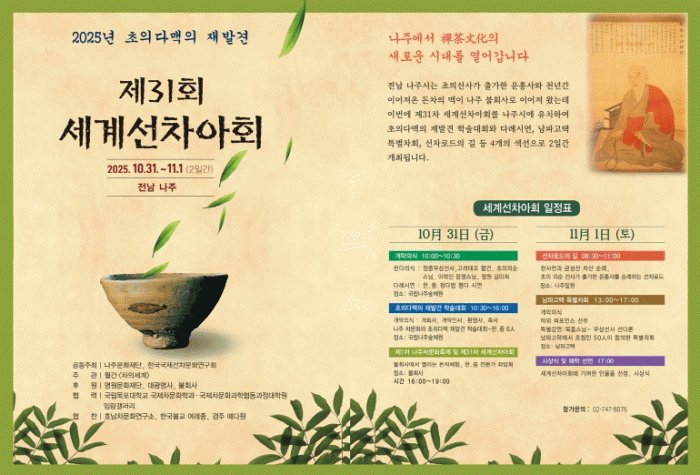 [¹Ìµð¾îÀü³² Á¦°¥´ëÁ¾ ±âÀÚ]³ªÁÖ¹®ÈÀç´ÜÀÌ ÃÊÀǼ±»çÀÇ Â÷ Á¤½ÅÀ» °è½ÂÇÏ°í ³ªÁÖ Â÷(Òþ) ¹®ÈÀÇ ¿ª»çÀû °¡Ä¡¿Í ¹Ì·¡ ºñÀüÀ» °øÀ¯Çϱâ À§ÇÑ Â÷ ¹®È Æ÷·³À» °³ÃÖÇÑ´Ù. Àç´ÜÀº ¡®ÃÊÀÇ ´Ù¸ÆÀÇ Àç¹ß°ß¡¯À» ÁÖÁ¦·Î ¿À´Â 10¿ù 31ÀϺÎÅÍ 11¿ù 1¡¦