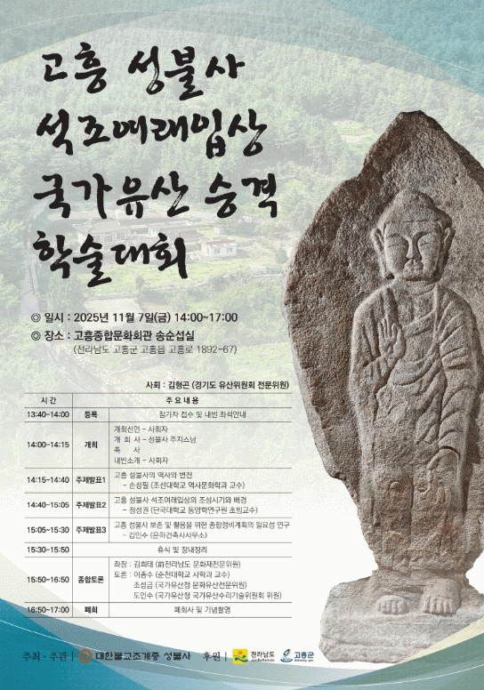 [¹Ìµð¾îÀü³² Á¦°¥´ëÁ¾ ±âÀÚ]°íÈﱺÀº ¿À´Â 11¿ù 7ÀÏ °íÈïÁ¾ÇÕ¹®Èȸ°ü ¼Û¼ø¼·½Ç¿¡¼ ¡®°íÈï ¼ººÒ»ç ¼®Á¶¿©·¡ÀÔ»ó ±¹°¡À¯»ê ½Â°Ý Çмú´ëȸ¡¯¸¦ °³ÃÖÇÑ´Ù°í ¹àÇû´Ù. À̹ø Çмú´ëȸ´Â Àü¶ó³²µµ¿Í °íÈﱺÀÌ ÁÖÃÖÇϰí, ´ëÇѺұ³Á¶°èÁ¾ ¼ººÒ»ç¡¦
