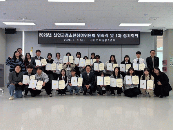 [¹Ìµð¾îÀü³² °í±Ô¼® ±âÀÚ]½Å¾È±ºÀº 4¿ù 3ÀÏ ½Å¾È±º °¡Á·¼¾ÅÍ¿¡¼ ¡®2026³â Á¦23±â ½Å¾È±º û¼Ò³âÂü¿©À§¿øÈ¸¡¯ À§Ã˽ÄÀ» °³ÃÖÇß´Ù. À̳¯ Çà»ç¿¡¼´Â °ø°³¸ðÁýÀ» ÅëÇØ ¼±¹ßµÈ û¼Ò³â 21¸í¿¡°Ô À§ÃËÀåÀÌ ¼ö¿©µÆ´Ù. À̾î À§¿øÈ¸ÀÇ ¿ªÇÒ°ú ¡¦