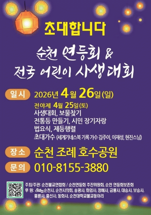 [¹Ìµð¾îÀü³² ÀÓ¼º¿Ï ±âÀÚ] ºÒ±â 2570³â ºÎó´Ô ¿À½Å ³¯À» ¸Â¾Æ, ¼øÃµÀÇ ¹ãÀ» ÀÚºñÀÇ µîºÒ·Î ¼ö³õ´Â ¡®2026 ¼øÃµ ¿¬µîȸ¡¯°¡ ¿À´Â 26ÀÏ Á¶·ÊÈ£¼ö°ø¿ø ÀÏ¿ø¿¡¼ È·ÁÇÏ°Ô ¸·À» ¿Ã¸°´Ù. ¼øÃµ½Ã¿Í ¼øÃµºÒ±³¿¬ÇÕȸ°¡ ÁÖÃÖ¡¤ÁÖ°üÇÏ´Â À̹ø Çà»ç¡¦